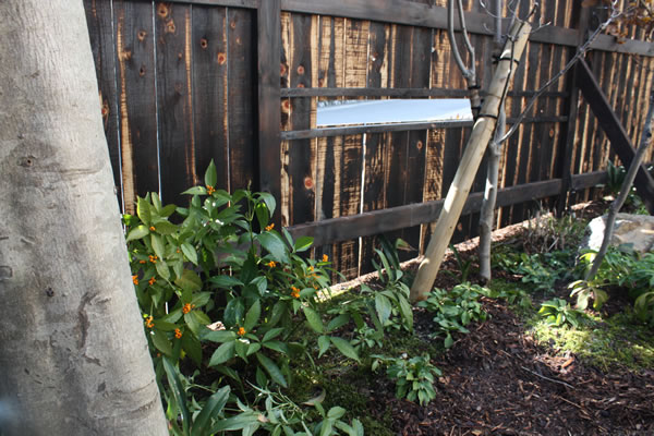 ウッドデッキの前には移植された植木達が和ませてくれます。