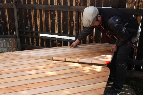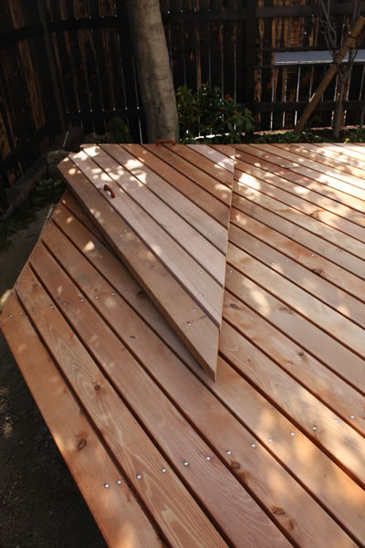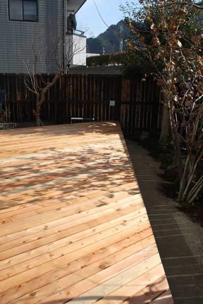 さて、問題、ウッドデッキにある工夫がされています。どんな工夫でしょうか?