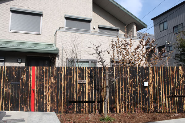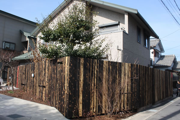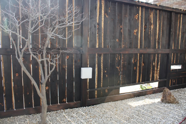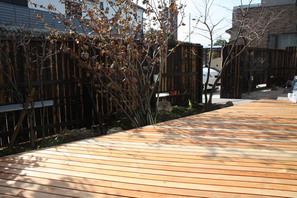 中はこんな感じです。ウッドデッキと植木、砂利が敷き詰められています。