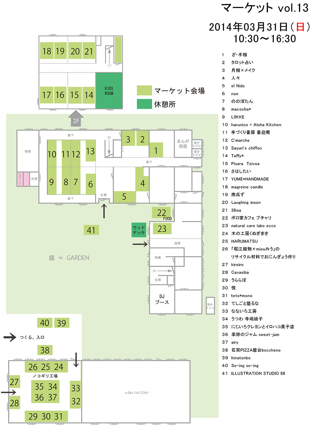 ノコギリ工場: 13ブース [ およそ 180 ㎝× 180 ㎝ 土足可能な板 ]