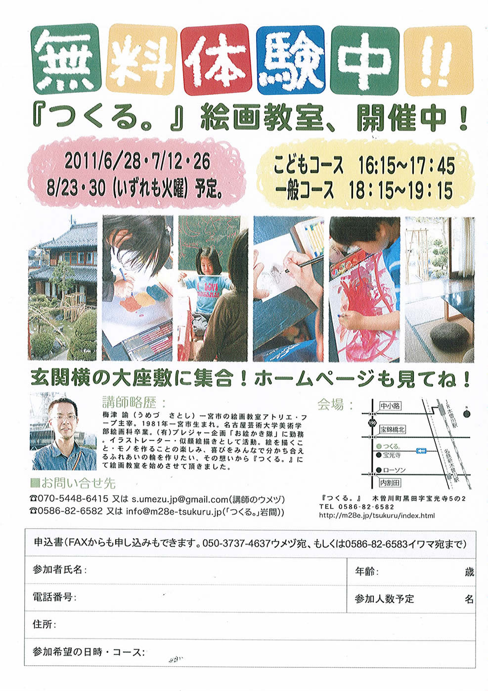 その想いから2011年4月から「つく る。」にて絵画教室を行っております。