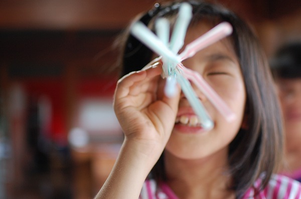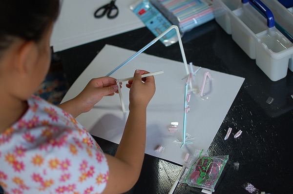 割り箸、ストロー、ヒモ、画用紙からモビールを作り、部屋に飾ろう!
