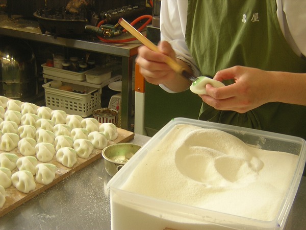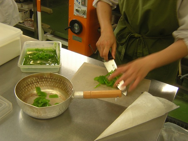 最後に緑色の羊羹で房をつけるところをみせてもらいました。