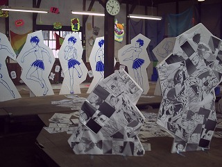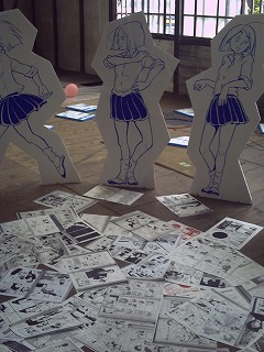 マンガが床いっぱいに広がってて