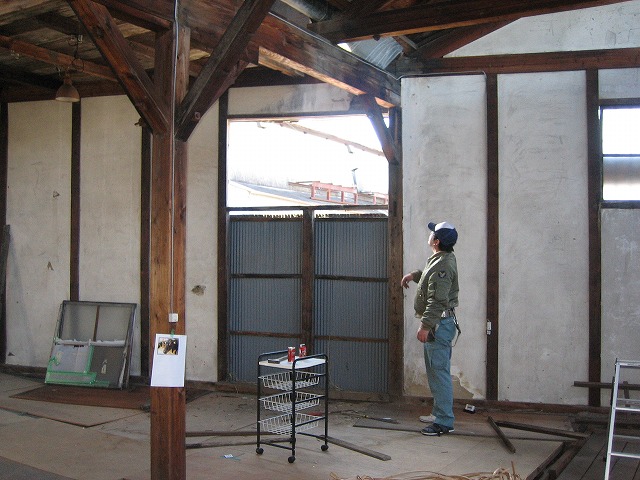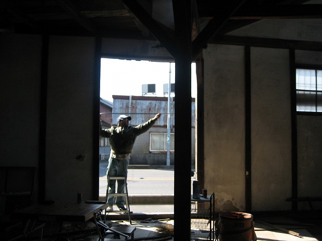 ノコギリ工場も 親方の提案で道路側に扉が・・・