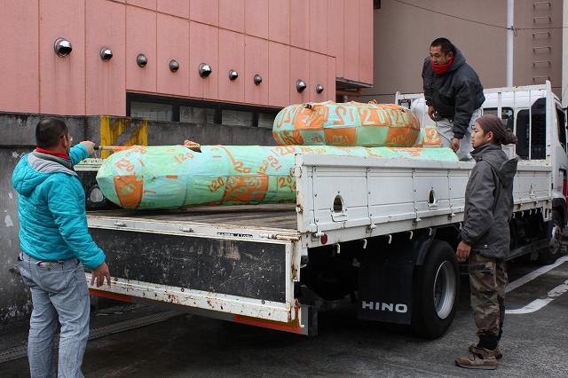 職人さんがヤナガセ造船所から数字行燈を運びだしております。