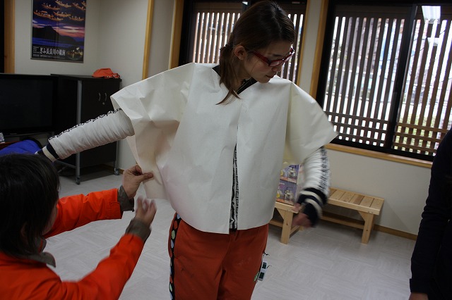 船に乗る人用の衣装を和紙で。