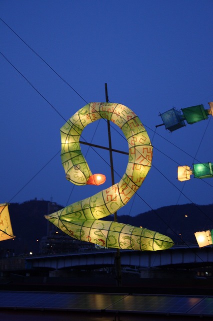 もう1日はこよみのよぶねの数字行燈を燃やす左義長に参加するためでした。
