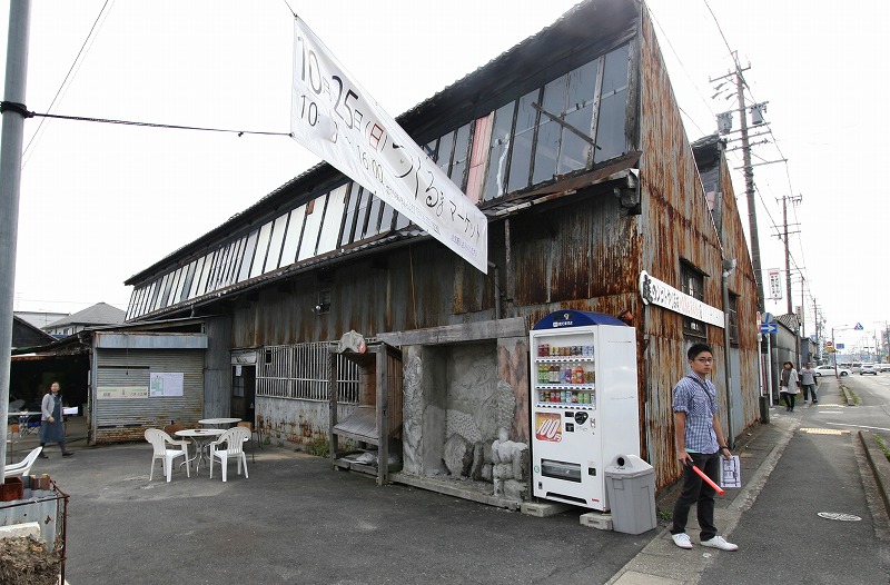 のこぎり屋根の織物工場跡を利用して、