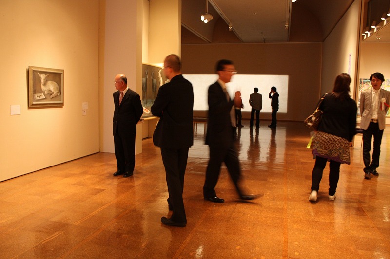 岐阜県美術館で行われる「話題のアーティストを紹介するクロスアート2 The 7 top runners ARTのメリーゴーランド」に、つくる。では襖絵でおなじみの奥村 晃史さんが出られることになり、今日はその初日でした。