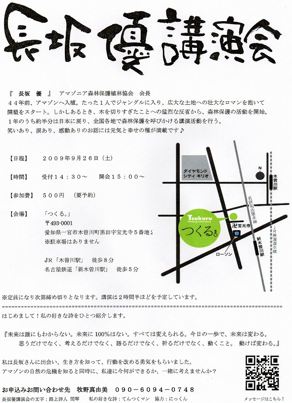 長坂優さん講演会(アマゾニア森林保護植林協会 会長)