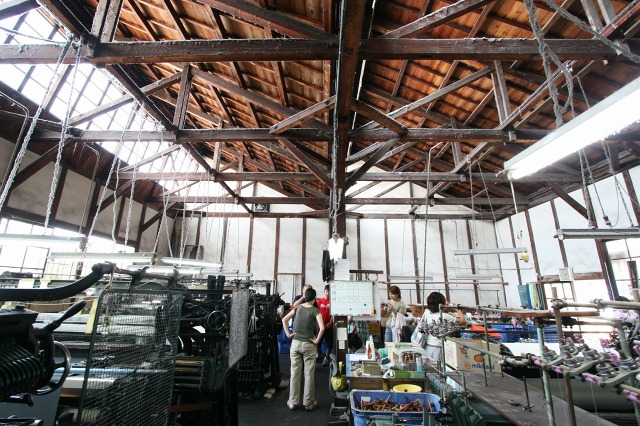 のこぎり屋根の織物工場跡を利用して、