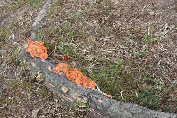上に登ったら、キノコが生えてる木がありました。