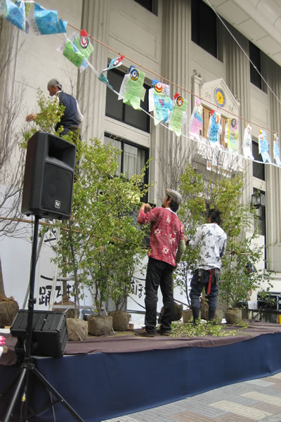 続きまして、『やろまい』というお祭りで、本町アーケードの中にある一宮市役所西分庁舎の前、ステージで行われました剪定ライブ「ミライをウエル」を ICC様のブースでやらせていただきました。
