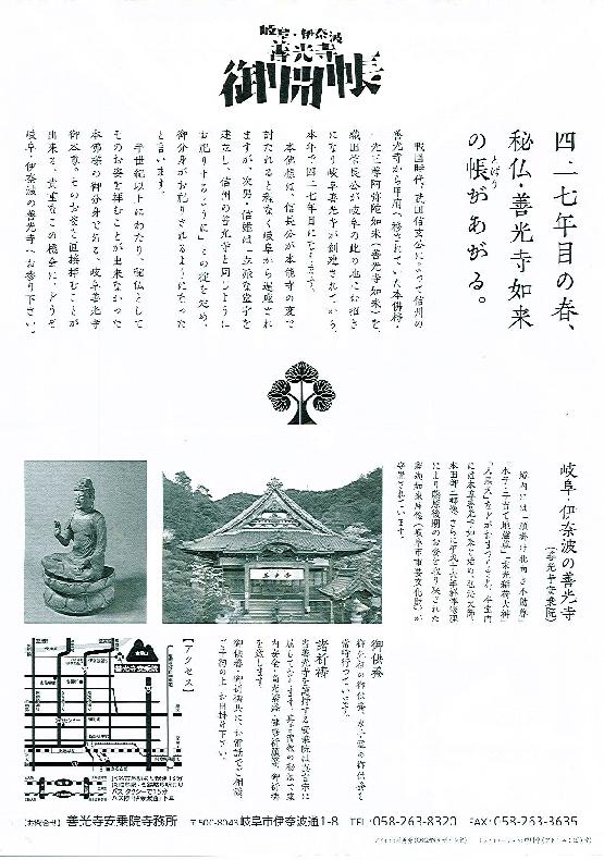 さて、ここで宣伝です。岐阜市の伊奈波神社の善光寺さん。4月5日より7年に1度の御開帳だそうです。