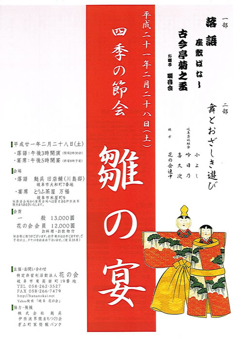 2月28日のことですが、岐阜の花の会さん主催の「雛の宴」が行われました。
