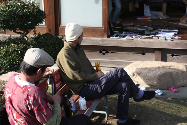 当日の様子。外ではちょっとした酒盛り。子どもたちは、庭で遊んだり、DVD鑑賞したり。