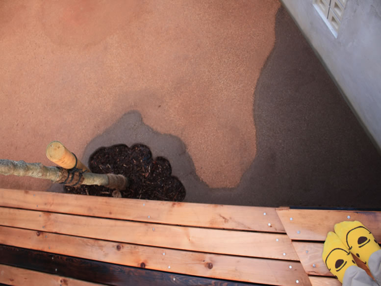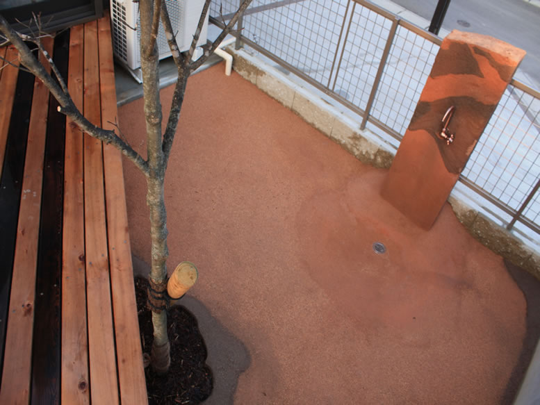 わんちゃんのフリースペースは、こんな感じ。この木はわんちゃんのトイレになってしまうのか!?