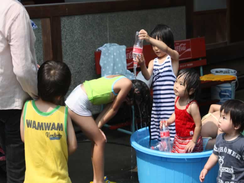 この日はとっても暑かったので、子どもたちは水浴びしてました。