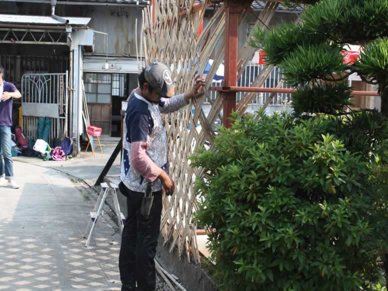 ANSWERのH山さんです。えっ?竹編み習ってる振りですよね?