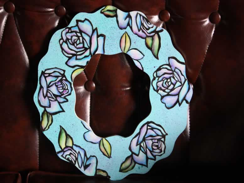 バラの模様のは木の上に切り絵が張ってあります。私はこれがお気に入り。なぜなら、切り絵は集中すると楽しいんですよ~